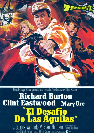 Clint Eastwood probably killed more of Adolf Hitler's German soldiers in director Brian G. Hutton's "Where Eagles Dare" (**** out of ****) than he did western outlaws as either Sergio Leone's Man with No Name in the "Dollars" trilogy or criminals as "Dirty Harry" in his five Warner Brothers crime movies. Bestselling British author Alistair MacLean penned the splendid screenplay that he later converted into a much tamer novel about a team of elite British M.I. 6 secret agents that parachute into Germany to rescue one of the top-ranking officers with a mother lode of knowledge about the June 6th Normandy landings. This MGM blockbuster that runs 158 minutes is probably the greatest action-adventure movie with a World War II setting ever produced. We're talking wall-to-wall gunfire with more surprises and complications than most movies ever attempt. Richard Burton and Eastwood as in top form and they get considerable help and guidance from busty Ingrid Pitt and Mary Ure as undercover female agents. "Where Eagles Dare" is also notable for its percussive orchestral soundtrack by composer Rod Goodwin, who carved a niche for himself in World War II movie soundtracks with "633 Squadron," "Force 10 from Navarone," "Operation Crossbow," and "The Battle of Britain." Some war movies take an anti-war stance, but neither Hutton nor MacLean had higher ideals on their collective minds when they made this war-as-an-adventure epic. If you are a World War II movie buff and you haven't seen "Where Eagles Dare," then you need to get yourself a copy of this memorable massacre.
